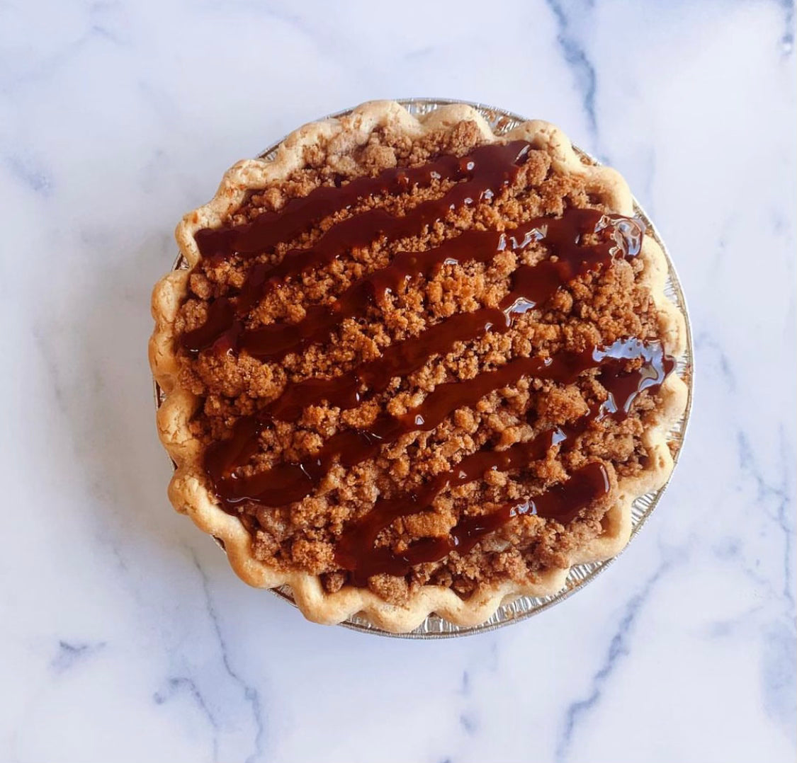 An all butter pie crust packed with spiced apples, topped with cinnamon streusel and salted caramel sauce topping. 9" serves 8. *IF YOU WOULD LIKE DELIVERY, THERE IS A $7...